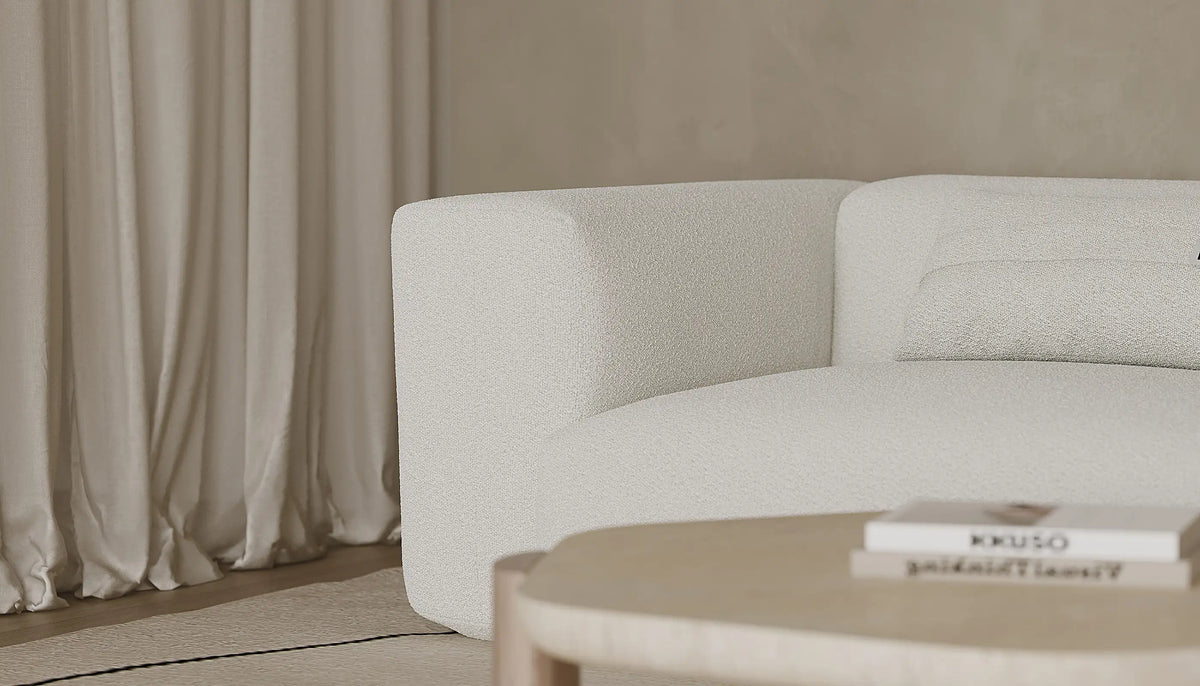 Softly textured and designed for everyday comfort, bouclé offers warmth and visual depth. Its looped surface feels inviting while remaining practical and easy to live with.
